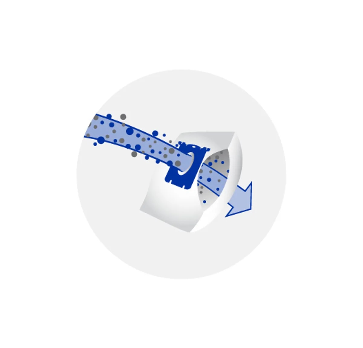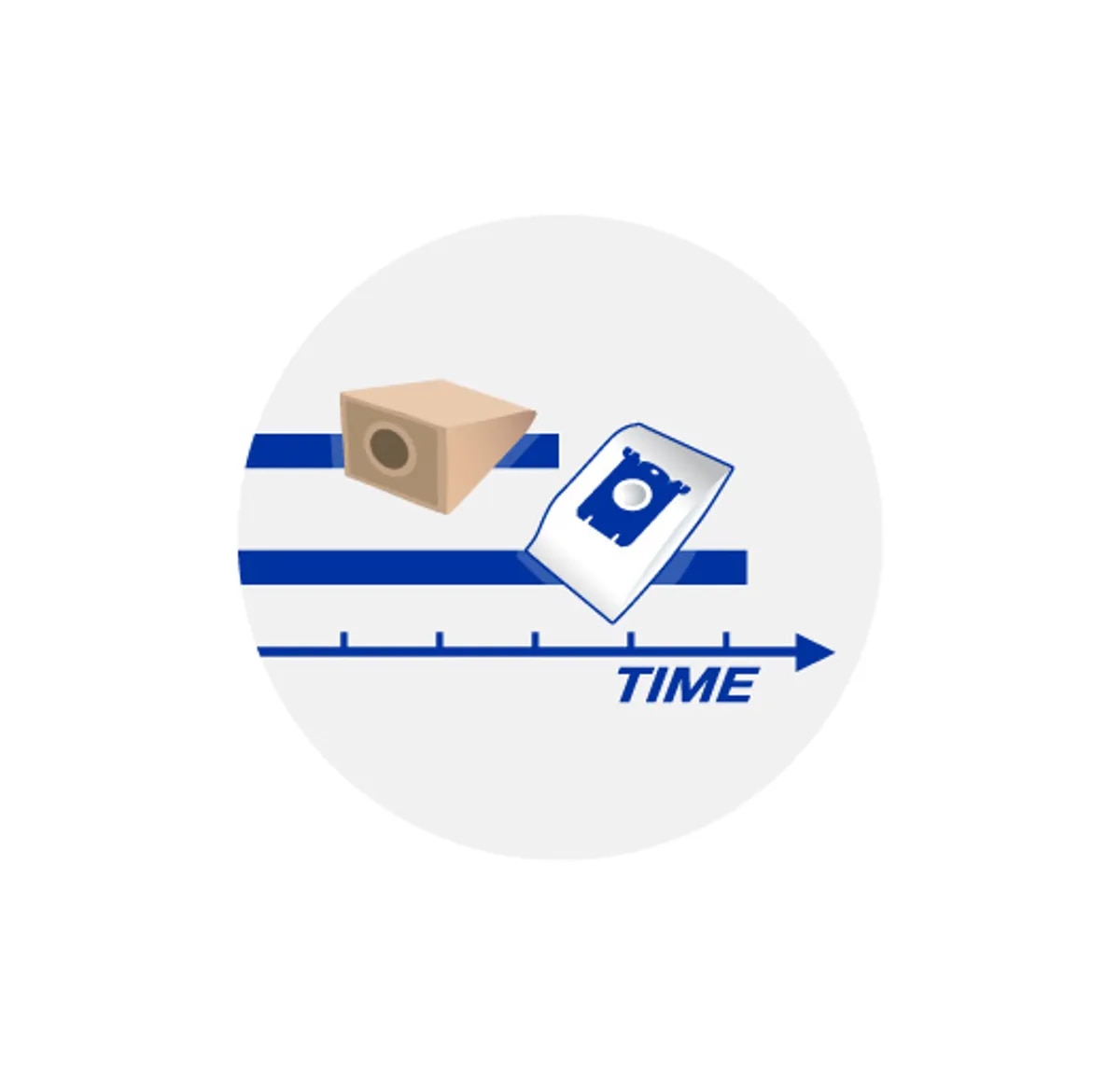 Sentetik DURAFLOW™ Fresh toz torbaları, normal kağıt toz torbalarından %50’ye kadar daha uzun kullanım ömrüne sahiptir. Bunun nedeni, torbanın yapıldığı malzemenin gelişmiş toz tutma kapasitesine sahip olması ve aynı zamanda torba tamamen dolana kadar emiş gücünü sürekli yüksek tutabilmesidir.